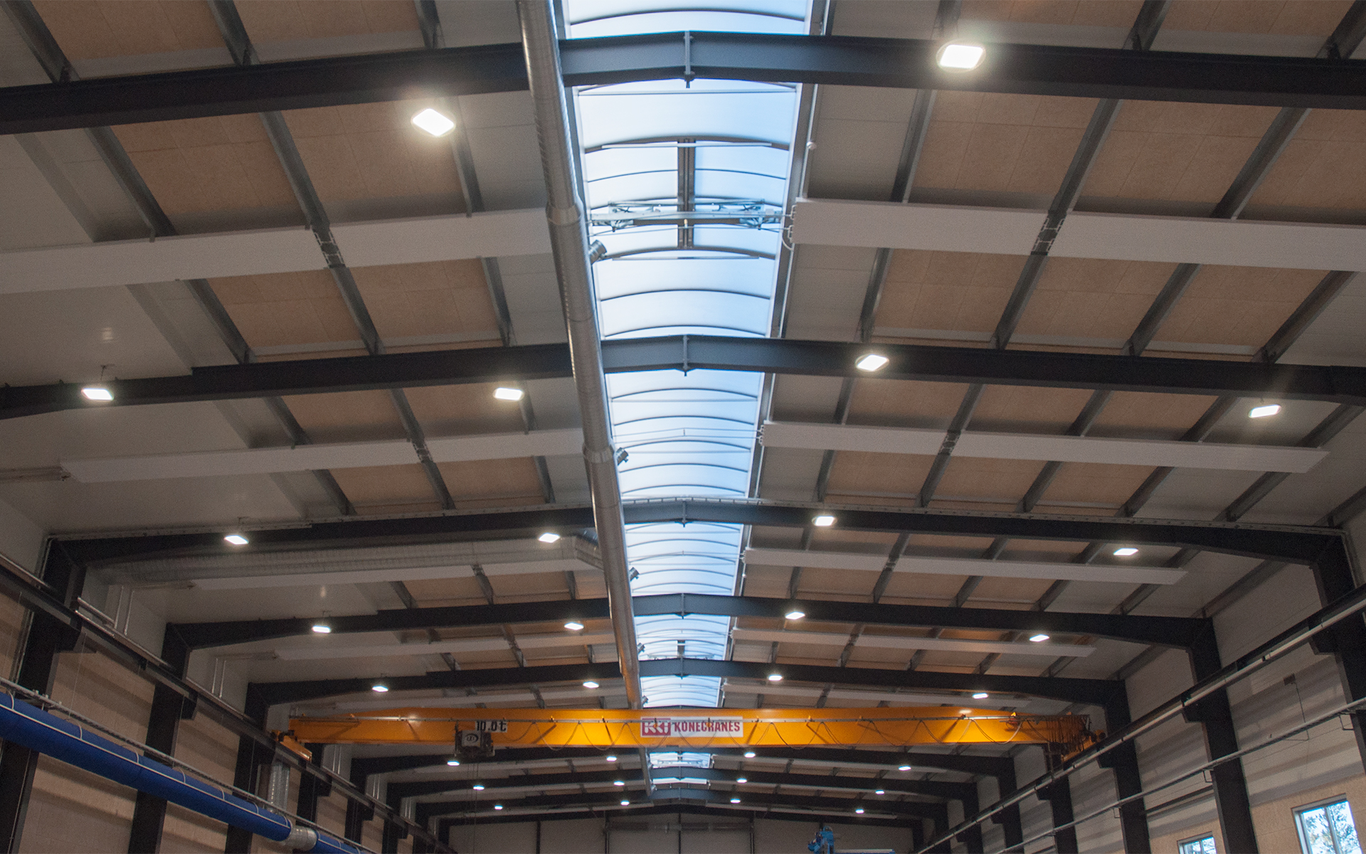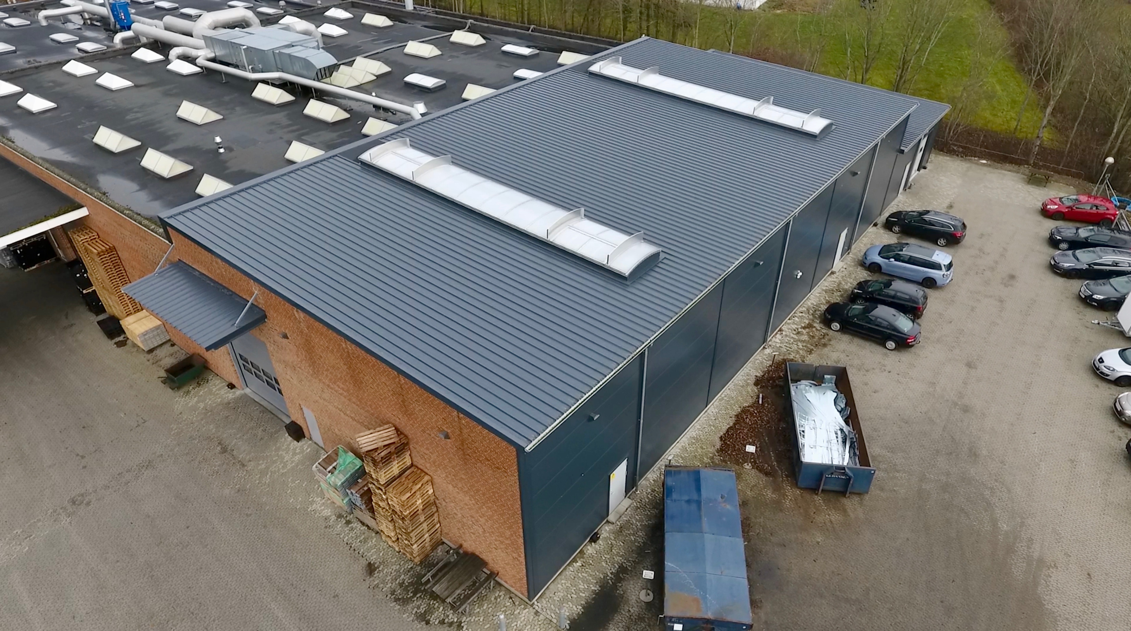 Den nye hal blev bygget op ad en eksisterende 600 m2 hal, som samtidig blev isoleret med PIR-skum.